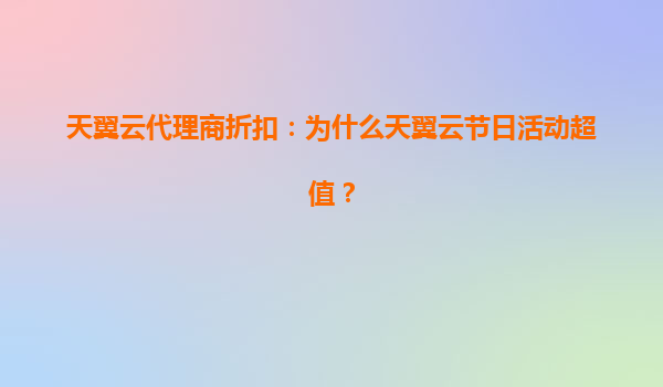 天翼云代理商折扣:为什么天翼云节日活动超值? 一、天翼云的品牌优势与技术实力 作为中国电信旗下的云计算服务品牌,天翼云凭借国企背景和强大的技术积累,为用户提供安全、稳定、高效的云服...