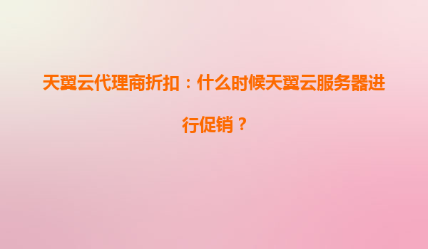 2025-07-22天翼云代理商折扣:什么时候天翼云服务器进行促销? 一、天翼云服务器的促销周期 作为国内领先的云计算服务提供商,天翼云会定期推出各类促销活动,以优惠价格回馈用户。以下是一些常见的促销时段: ...