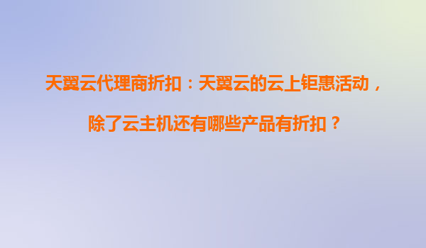 2025-10-28天翼云代理商折扣全解析:揭秘云上钜惠活动的多品类福利 一、天翼云代理商的核心优势 作为中国电信旗下云计算服务品牌,天翼云凭借央企背景、全国覆盖的基础设...