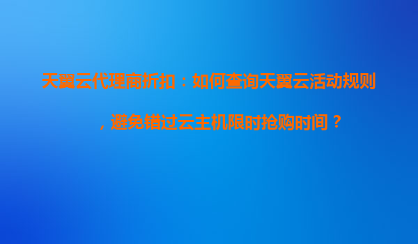 天翼云代理商折扣指南:如何精准查询活动规则,抢购限时云主机? 一、天翼云的核心优势 作为中国电信旗下云计算品牌,天翼云凭借以下优势成为企业上云首选: ...