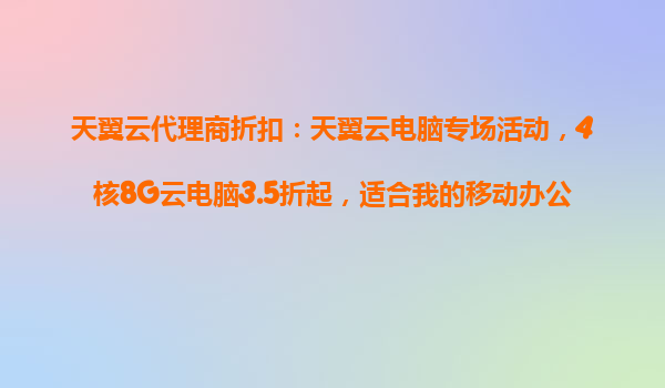 2025-10-27天翼云代理商折扣:天翼云电脑专场活动解析 一、活动核心内容:4核8G云电脑3.5折起 本次天翼云代理商推出的专场活动主打高性价比云电脑服务,针对4核8G配置的云电脑提供最低3.5折的优惠折扣。这一...