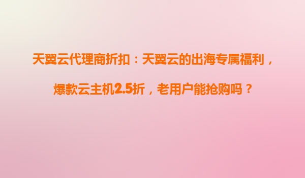 2025-10-28天翼云代理商折扣:出海专属福利与爆款云主机2.5折解析 一、天翼云代理商折扣的出海专属福利 天翼云作为中国电信旗下的云计算服务品牌,近年来在国内外市场持续发力,尤其针对出海企业提供了专属的云计算...