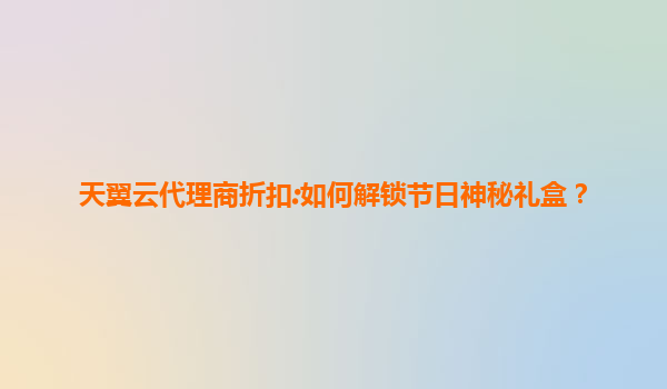 2025-07-11天翼云代理商折扣:如何解锁节日神秘礼盒? 一、天翼云的优势与节日活动 天翼云作为中国电信旗下的云计算服务品牌,凭借其强大的基础设施、安全稳定的服务以及丰富的产品线,已成为企业...