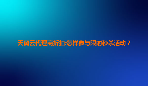 2025-07-10如何高效参与天翼云代理商限时秒杀活动 天翼云作为国内领先的云计算服务提供商,一直以高性能、高可靠性和高安全性著称。对于代理商而言,参与限时秒杀活动不仅能提升销量,还能为客户带来实实在在的优惠。本文将详...