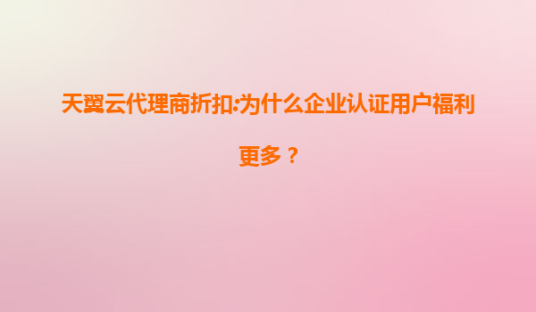 2025-07-10天翼云代理商折扣:为什么企业认证用户福利更多? 在云计算市场竞争日益激烈的今天,天翼云作为中国电信旗下的云服务品牌,凭借其独特的资源优势和行业积淀,赢得了众多企业的青睐。而对于企业用户来...