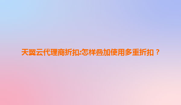 2025-07-10天翼云代理商折扣:如何有效叠加多重折扣策略 一、天翼云的核心优势与代理商体系 中国电信天翼云作为国内领先的云计算服务商,凭借其央企背景、全国覆盖的网络...