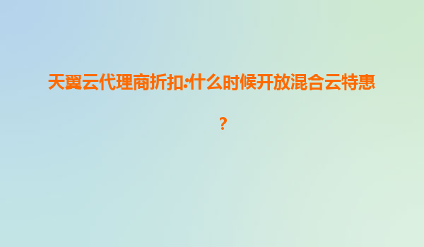 2025-07-09天翼云代理商折扣:混合云特惠活动开放时间及核心优势解析 混合云特惠活动开放时间 作为中国电信旗下的云计算服务品牌,天翼云定期为代理商和终端客户推出专项优惠活动。关于混合云特惠的开...