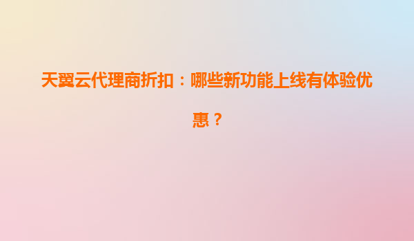 2025-07-07天翼云代理商折扣新功能上线:体验优惠助力企业数字化转型 天翼云代理商折扣政策概览 天翼云作为中国电信旗下的云计算服务品牌,近年来通过代理商体系为企业用户提供了极具竞争力的折扣政策。针对新上线的...