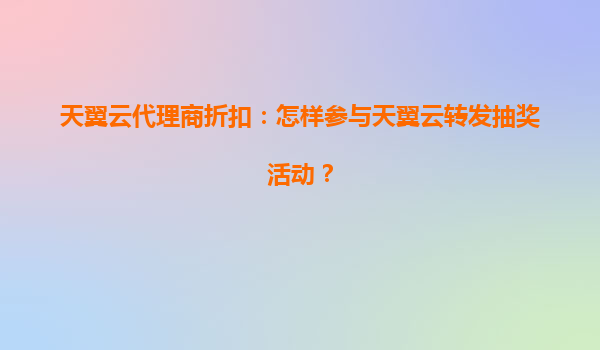 2025-07-06天翼云代理商折扣:怎样参与天翼云转发抽奖活动? 一、天翼云的优势 天翼云作为中国电信旗下的云计算品牌,凭借其强大的技术实力和丰富的资源积累,已成为国内领先的云服务提供商之一。以下是天翼云的几大...