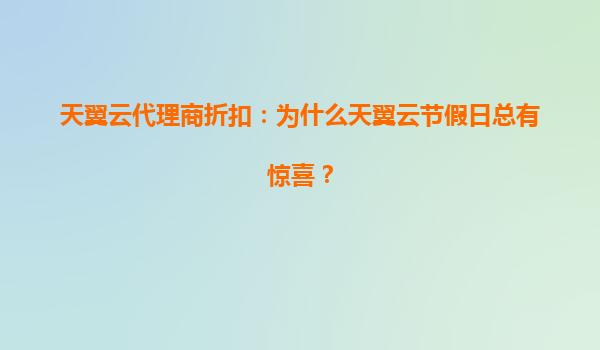 2025-07-06天翼云代理商折扣:为什么天翼云节假日总有惊喜? 引言 在云计算市场竞争日益激烈的今天,天翼云凭借其独特的优势和节假日期间的惊喜活动,赢得了众多企业和个...