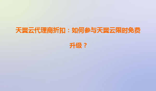 2025-07-06天翼云代理商折扣:如何参与天翼云限时免费升级? 一、天翼云的优势与代理商的价值 天翼云作为中国电信旗下的云计算品牌,凭借央企背景、强大的基础设施和稳定...