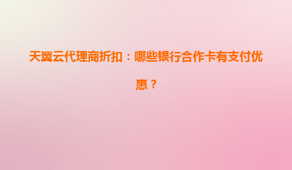 2025-07-06天翼云代理商折扣:哪些银行合作卡有支付优惠? 一、天翼云的核心优势 天翼云作为中国电信旗下的云计算品牌,凭借央企背景和技术实力,在基础设施、安全合规、本地化服务等方面具有显著优势: ...