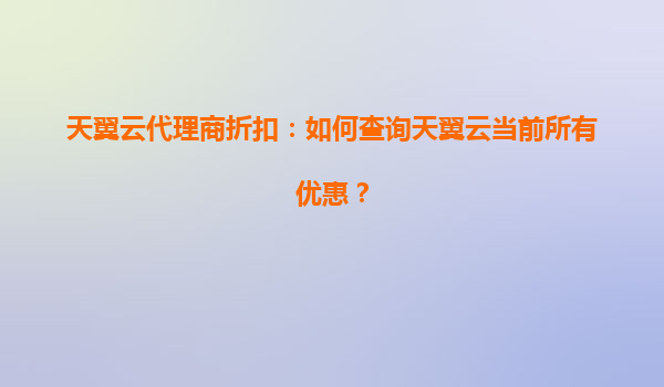 2025-07-05天翼云代理商折扣:支持满减活动的支付方式详解 天翼云代理商折扣的优势 天翼云作为中国电信旗下的云计算服务品牌,凭借其强大的基础设施和稳定的网络服务,为用户提供了高性能、高安全的云服务解决方案。...