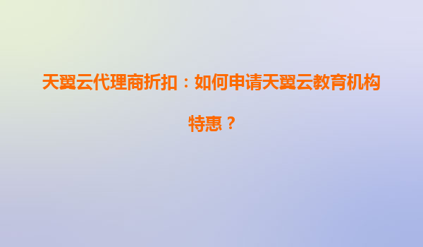 2025-07-06天翼云代理商折扣:如何申请天翼云教育机构特惠? 一、天翼云教育机构特惠的背景与意义 随着数字化教育的快速发展,云计算已成为教育机构信息化建设的核心支撑。天翼云作为中国电信旗下的云计算品牌,凭借...