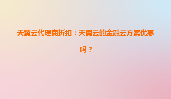 2025-07-01天翼云代理商折扣:天翼云的金融云方案优惠解析 一、天翼云金融云方案的核心优势 作为中国电信旗下的云计算品牌,天翼云凭借其央企背景和金融级安全能力,为金融机构提供稳定、合规且高性价比的云服务解决...