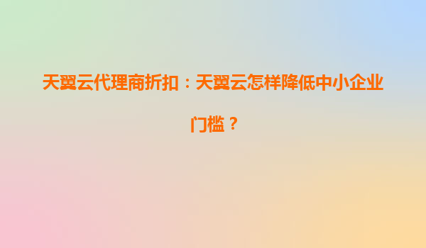 2025-07-01天翼云代理商折扣:天翼云怎样降低中小企业门槛? 随着数字化转型的加速,云计算已成为中小企业提升竞争力的关键工具。然而,高昂的成本和技术门槛往往让中小企业望而却步。天翼云作为中国电信旗下的云计算品牌...