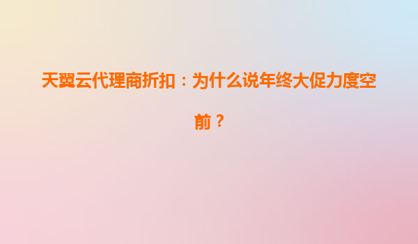 天翼云代理商年终大促:为何力度空前? 随着年末临近,天翼云代理商推出年度最大力度的促销活动,吸引了众多企业和开发者的关注。本次年终大促不仅折扣空前,更结合了天翼云的技术优势与服务体系,为用户带来全...
