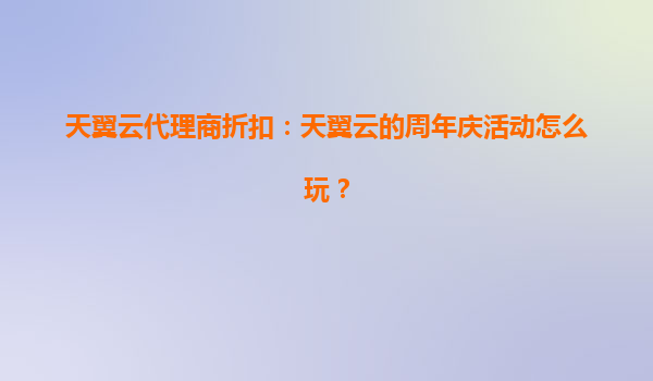 2025-07-01天翼云代理商折扣:天翼云的周年庆活动怎么玩? 一、天翼云周年庆活动玩法解析 天翼云作为中国电信旗下的云计算品牌,每年都会在周年庆期间推出重磅优惠活动。今年的周年庆活动同样诚意满满,主要玩法包括...