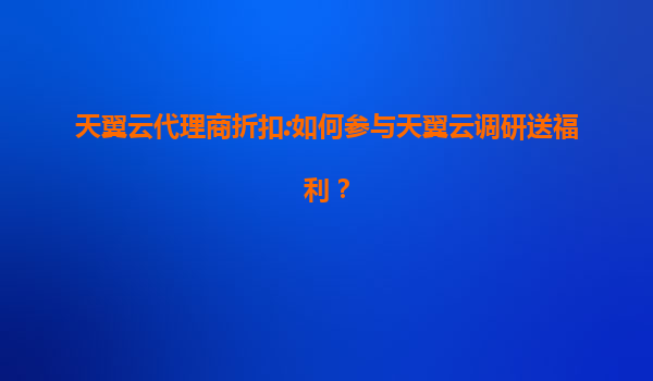 2025-06-26天翼云代理商折扣:参与调研赢福利,共享云端新机遇 活动简介:您的意见,我们的礼物 天翼云为回馈广大代理商伙伴长期支持,正式启动"代理商调研送福利"计划。...