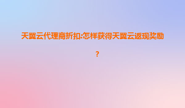 2025-06-25天翼云代理商折扣:怎样获得天翼云返现奖励? 在数字化转型浪潮中,天翼云凭借央企背景与领先技术成为企业上云首选。作为代理商,掌握返现奖励机制不仅能提升利润空间,更能增强市场竞争力。本...