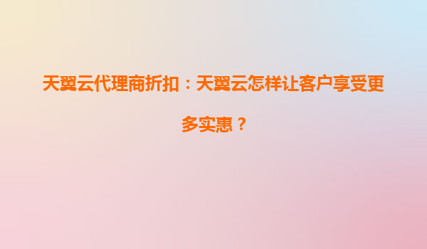 2025-06-23#天翼云代理商折扣:如何让客户享受更多实惠? 以下是根据您的要求创建的HTML内容: 引言:云服务市场中的实惠之道 在数字化转型加速...