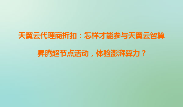 2025-10-23天翼云代理商折扣:体验智算昇腾超节点澎湃算力的全攻略 一、天翼云核心优势:为何选择智算昇腾超节点? 天翼云作为中国电信旗下云计算品牌,依托央企级资源与全国分布式数据中心布局,在智算领域具备三大核...