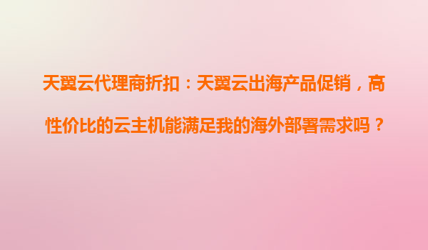 2025-10-23天翼云出海产品促销:高性价比云主机助力企业海外部署 随着全球化进程加速,越来越多企业将业务拓展至海外市场。面对海外复杂的IT基础设施环境,如何选择稳定可靠的云计算服务成为关键。天翼云作为中国电信旗下云服...