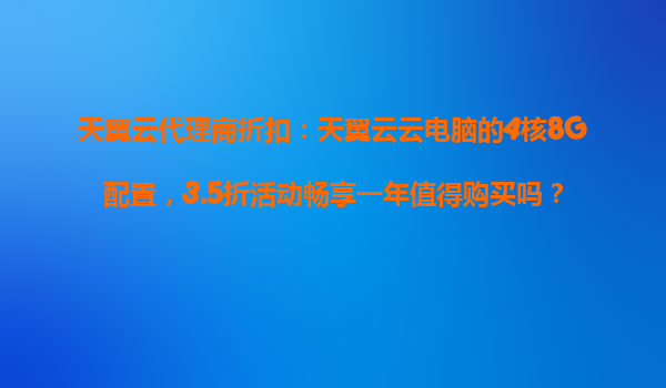2025-10-23天翼云代理商折扣:天翼云云电脑4核8G配置3.5折活动畅享一年值得购买吗? 一、引言:云计算时代的企业选择 在数字化转型浪潮中,企业上云已成为必然趋势。天翼云作为中国电信旗下云计算品牌,近期推出的"4...