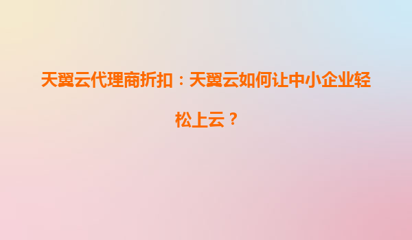 2025-06-20天翼云代理商限时折扣:引爆市场的三重魅力 近期,天翼云通过代理商渠道推出的限时折扣活动在云计算领域掀起热议浪潮。企业用户纷纷抢购云主机、存储及安全产品,社交平台上"天翼云性价比"话题热度持续攀升。这...