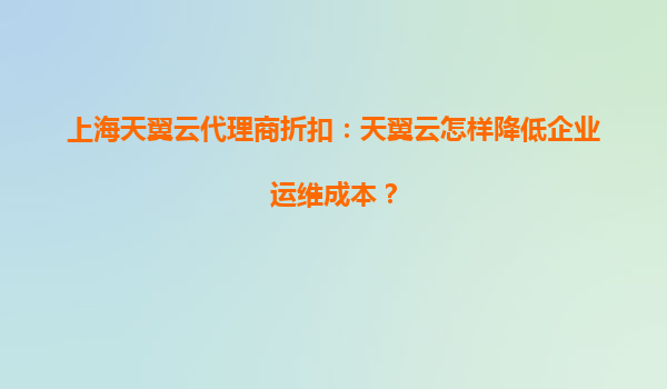 上海天翼云代理商折扣:天翼云怎样降低企业运维成本? 随着数字化转型加速,企业IT运维成本持续攀升,成为制约发展的关键因素。上海天翼云通过代理商折扣政策和自身技术优势,为企业提供了一套完整...