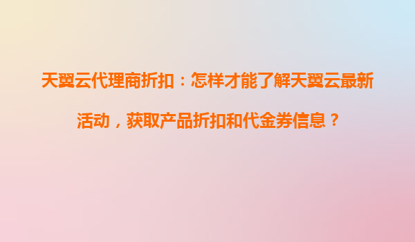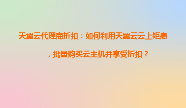 2025-10-23天翼云代理商折扣:如何利用云上钜惠批量购买云主机 一、天翼云代理商折扣政策解析 天翼云为代理商提供阶梯式折扣政策,采购量越大,享受的折扣力度越高。通过成为天翼云认证代理商,企业可获专属客户经理支持...