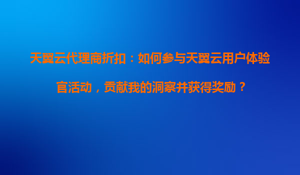2025-10-22天翼云代理商折扣:如何参与天翼云用户体验官活动,贡献我的洞察并获得奖励? 一、天翼云的优势与用户体验官活动背景 天翼云作为中国电信旗下的云计算服务品牌,凭借其强大的基础设施、高安全性、稳定...
