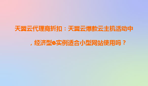 2025-10-23天翼云代理商折扣:经济型e实例是否适合小型网站使用? 一、天翼云经济型e实例的核心优势 在天翼云爆款云主机活动中,经济型e实例凭借以下特点成为小型网站的优选: 高性...