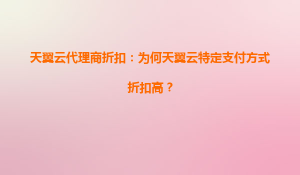 2025-06-13天翼云代理商折扣解析:为何特定支付方式能享更高优惠? 在云计算服务市场竞争日益激烈的今天,天翼云作为中国电信旗下的云服务品牌,通过创新的代理商政策和差异化的支付方式折扣策略,持续扩...