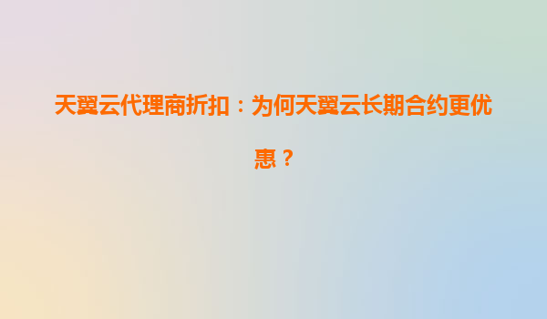 2025-06-12天翼云代理商折扣解析:为何长期合约更优惠? 一、云计算市场的合约新趋势 在数字化转型加速的今天,企业上云已成刚需。天翼云作为国内领先的云服务商,通过"直销+代理商"双轨模式,为企...