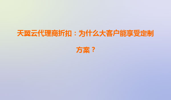 2025-06-10天翼云代理商折扣解析:大客户定制化方案的背后逻辑 一、云计算市场的差异化服务需求 在数字化转型浪潮中,企业上云已成为刚需,但不同规模企业的需求存在显著差异。中小企业通常选择标...