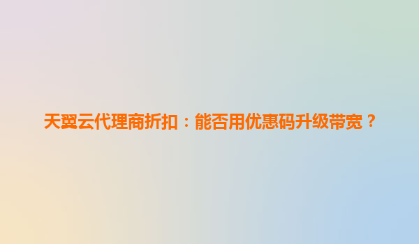天翼云代理商折扣解析:巧用优惠码升级带宽,降本增效新策略 一、直击用户痛点:优惠码能否用于带宽升级? 许多天翼云用户在使用过程中常遇到这样的疑问:"通过代理商获取的优惠码,是否...