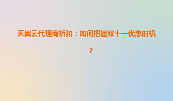 2025-06-10天翼云代理商折扣:双十一优惠时机全攻略 一、双十一:企业云服务采购的黄金窗口 双十一是天翼云年度最大促销节点,代理商可获得叠加折扣(基础产品5折起+额外代理返点)。2022年数据显...