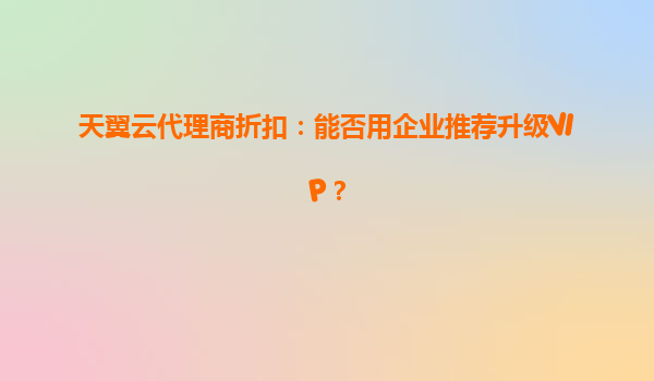 天翼云代理商折扣:企业推荐能否成为升级VIP的捷径? 随着企业数字化转型加速,云计算服务成为核心竞争力。天翼云作为国内领先的云服务商,通过代理商体系为企业提供专属折扣方案。本文深入解...