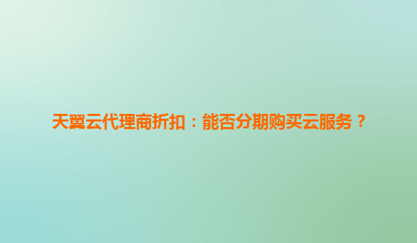 2025-06-08天翼云代理商折扣:灵活分期助力企业轻松上云 云计算时代的企业新选择 在数字化转型浪潮中,云服务已成为企业发展的核心引擎。面对IT成本管控需求,许多企业关心能否分期支付云服务...