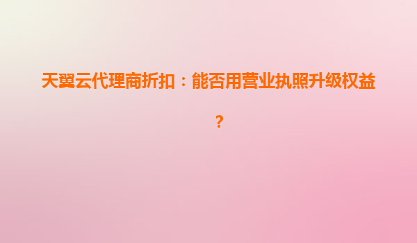 2025-06-07天翼云代理商折扣:营业执照如何升级权益?深度解析与操作指南 一、营业执照:解锁代理商权益升级的核心钥匙 在天翼云代理商体系中,营业执照是升级权益的必备条件。个人用户仅能享受基础折扣,而企业用...