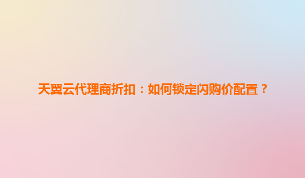 2025-06-07天翼云代理商折扣攻略:如何高效锁定闪购价配置? 一、天翼云闪购活动的核心价值 天翼云闪购是面向企业用户的限时特惠活动,提供高达70%的折扣力度,涵盖云主机...