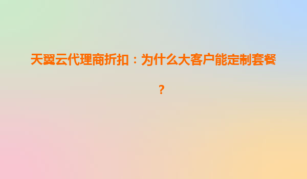 2025-06-07天翼云代理商折扣解析:为什么大客户能享受定制化套餐? 一、天翼云的核心优势 作为中国电信旗下的云计算品牌,天翼云凭借独特优势在市场竞争中脱颖而出: 国家队级安全...