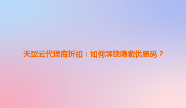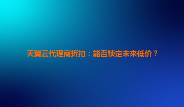 天翼云代理商折扣:能否锁定未来低价?深度解析与策略指南 在云计算市场竞争白热化的今天,企业用户不仅关注云服务的技术性能,更对成本控制尤为敏感。"能否通过代理商折扣锁定未来低价"成为许多CIO的...