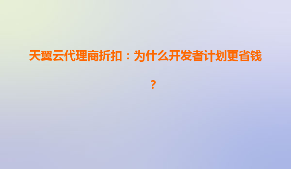 2025-06-05天翼云代理商折扣:为什么开发者计划更省钱? 引言:云服务成本优化的关键选择 在数字化转型浪潮中,云计算成本是开发者必须精打细算的关键环节。天翼云作为中国电信旗下的云服务品牌,...