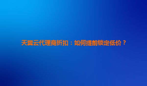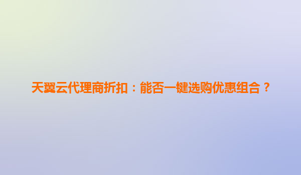 2025-06-04天翼云代理商折扣策略:提前锁定低价,智享云端红利 引言:把握云时代成本先机 在数字化转型浪潮中,云计算成本控制成为企业核心关注点。天翼云作为国内领先的云服务商...