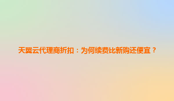2025-06-04天翼云代理商折扣解析:为何续费比新购更优惠? 当天翼云用户通过代理商进行业务续费时,常发现一个有趣现象:续费价格竟低于新购价格。这看似违反商业直觉的定价策略背后,...