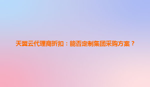2025-06-04天翼云代理商折扣:量身定制集团采购方案,助力企业数字化转型 一、天翼云:企业上云的可靠之选 在数字化转型浪潮中,云计算成为企业核心基础设施。作为中国电...