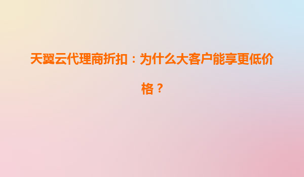 2025-06-04天翼云代理商折扣解析:为何大客户能享更低价格? 一、云计算市场的定价逻辑 在云计算服务领域,价格差异化是行业普遍策略。天翼云作为中国电信旗下云服务品牌,通过代理商体系为不同规模客户提供定制...