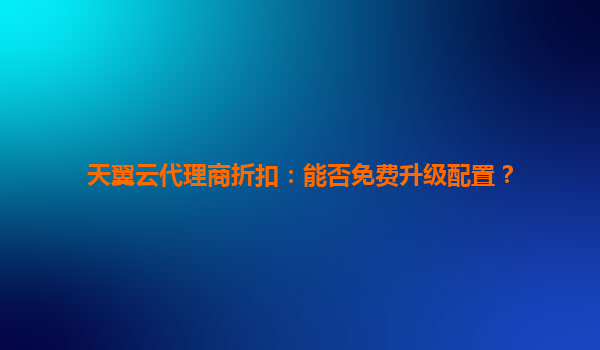 天翼云代理商折扣:能否免费升级配置?深度解析合作优势 随着企业数字化转型加速,云计算服务成为核心基础设施。作为中国电信旗下云服务品牌,天翼云凭借国家队的安全基因和全域资源覆盖,稳居国内云服务第一梯...